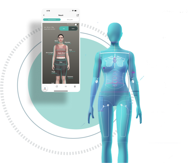 Precise consumer body measurements for tailored size recommendations Enhanced shopping experience through size-first selection